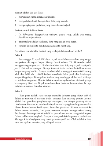 Berikut adalah ciri-ciri fakta: