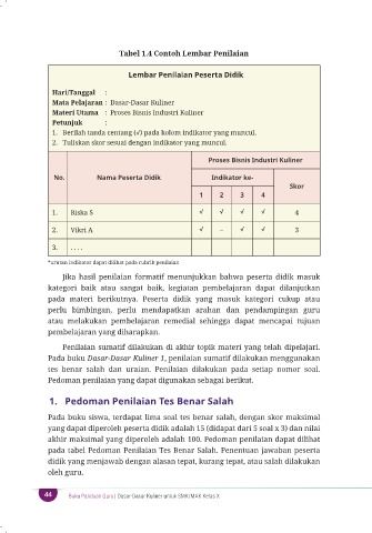 Pada buku Dasar-Dasar Kuliner 1, penilaian sumatif dilakukan menggunakan